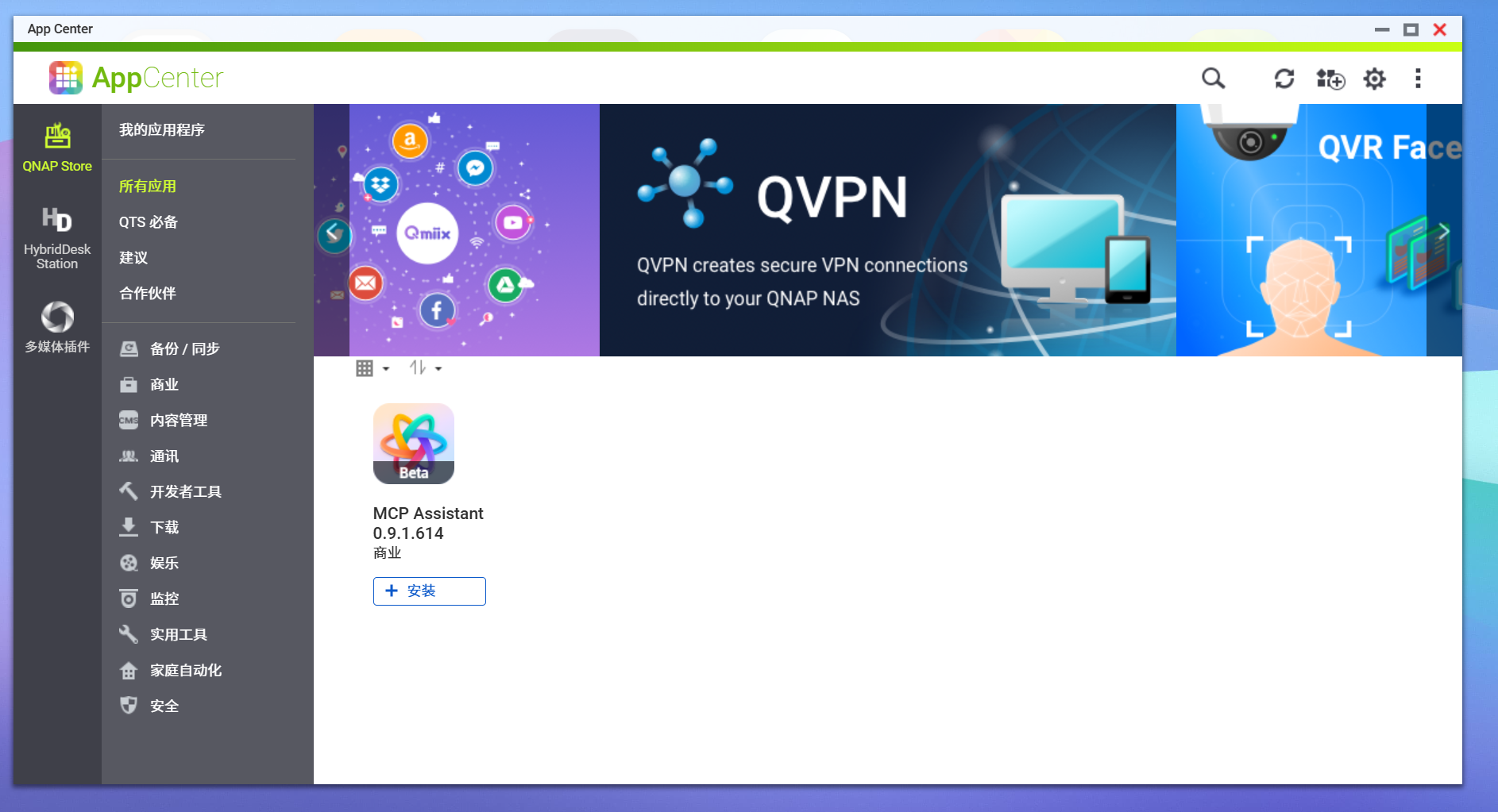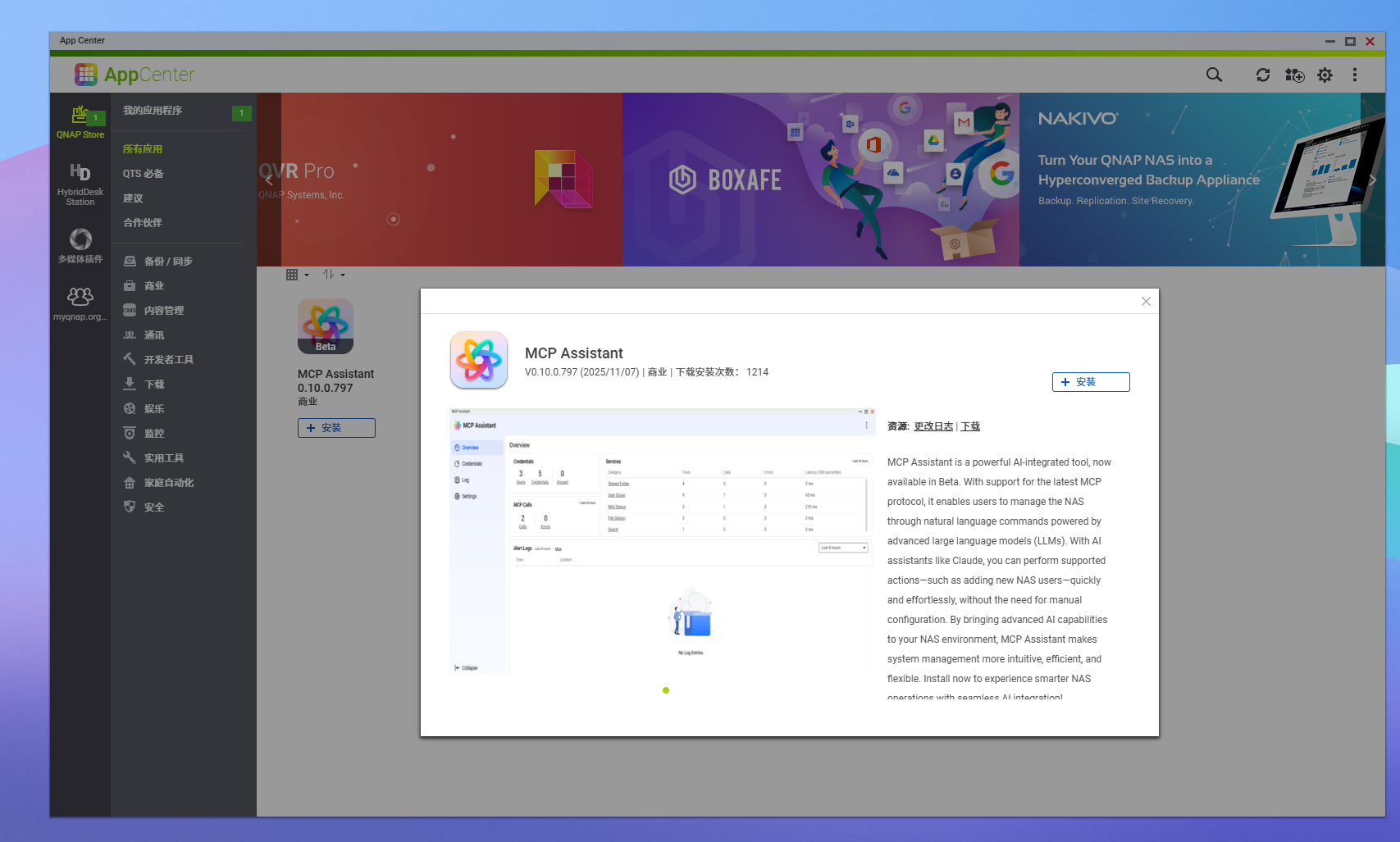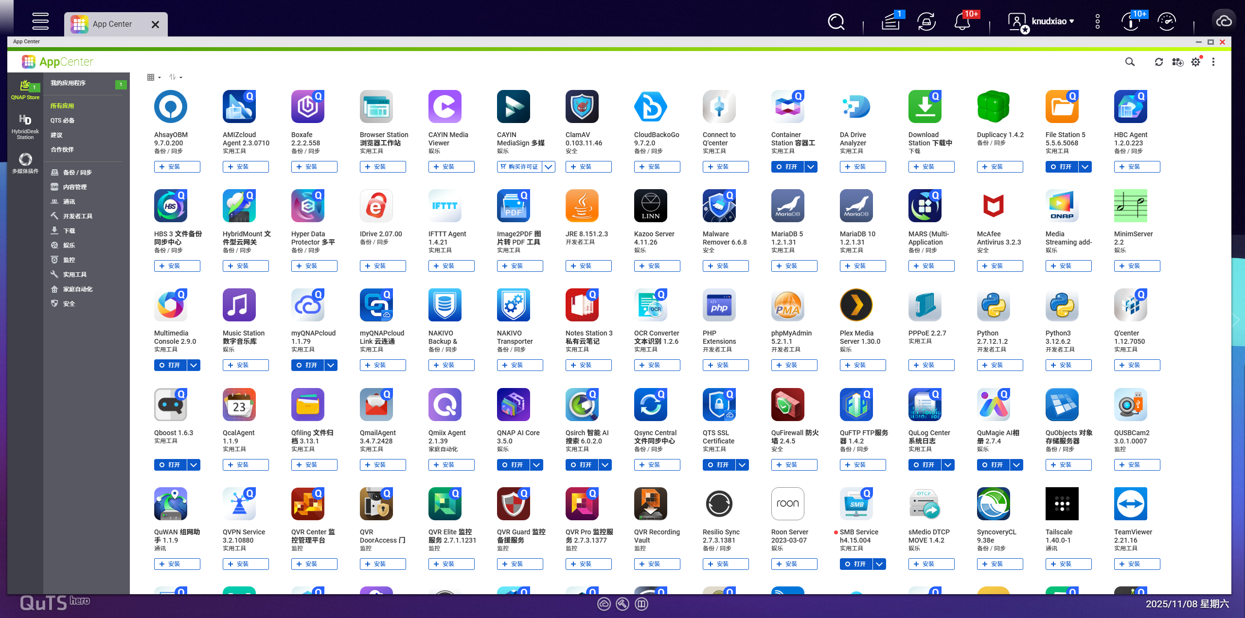 Container Manager、智能备份东西HBS3、夹杂云网关HybridMount以及强大的当地搜刮引擎Qsirch。目前 App Center 已收录近 50 款原生使用,还有多个来自社区取第三方开辟者的扩展插件,笼盖备份、AI、影音、通信、平安、等 11 大类别,建立出一个兼容性高、可扩展性强的使用生态系统。