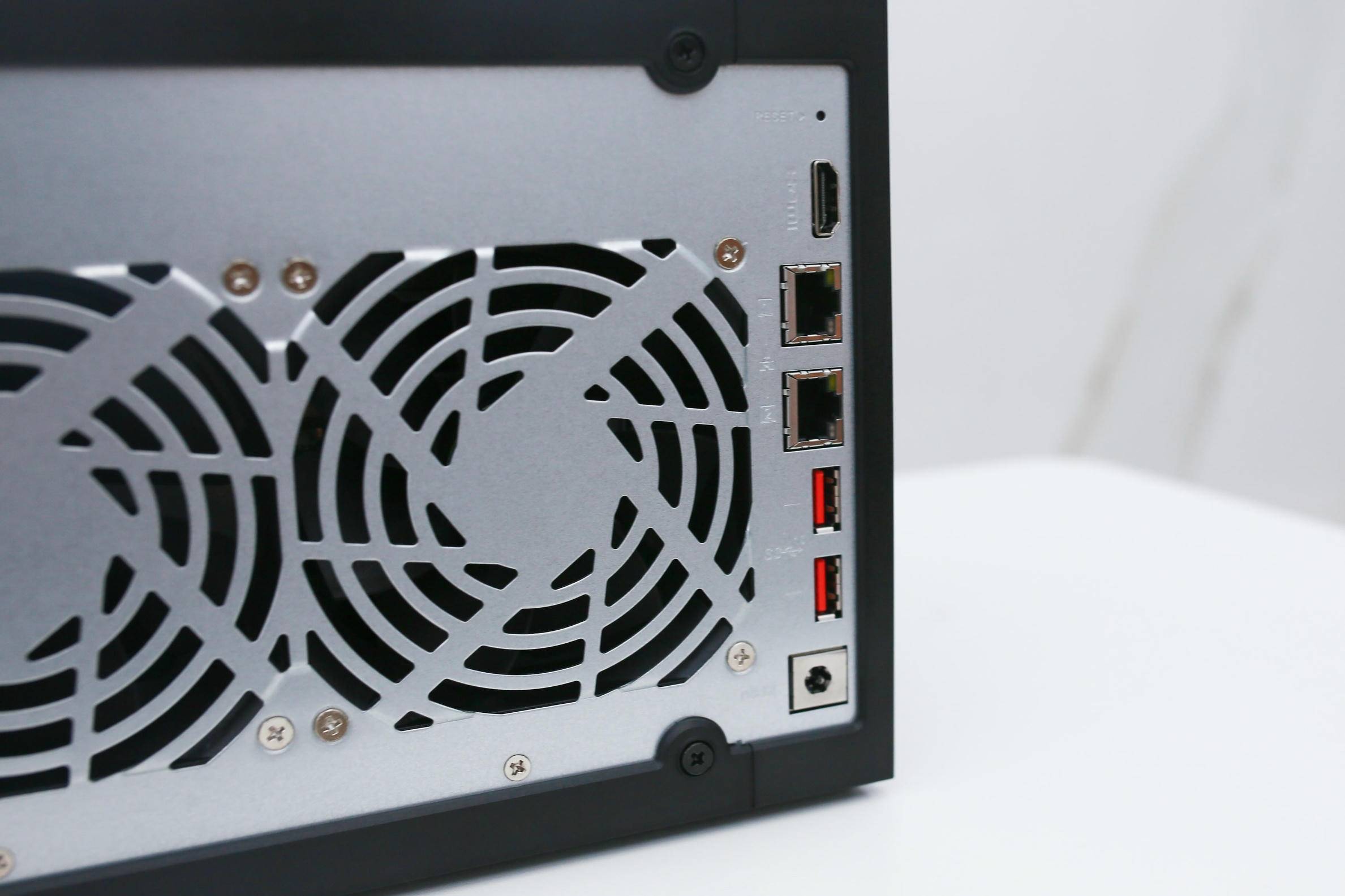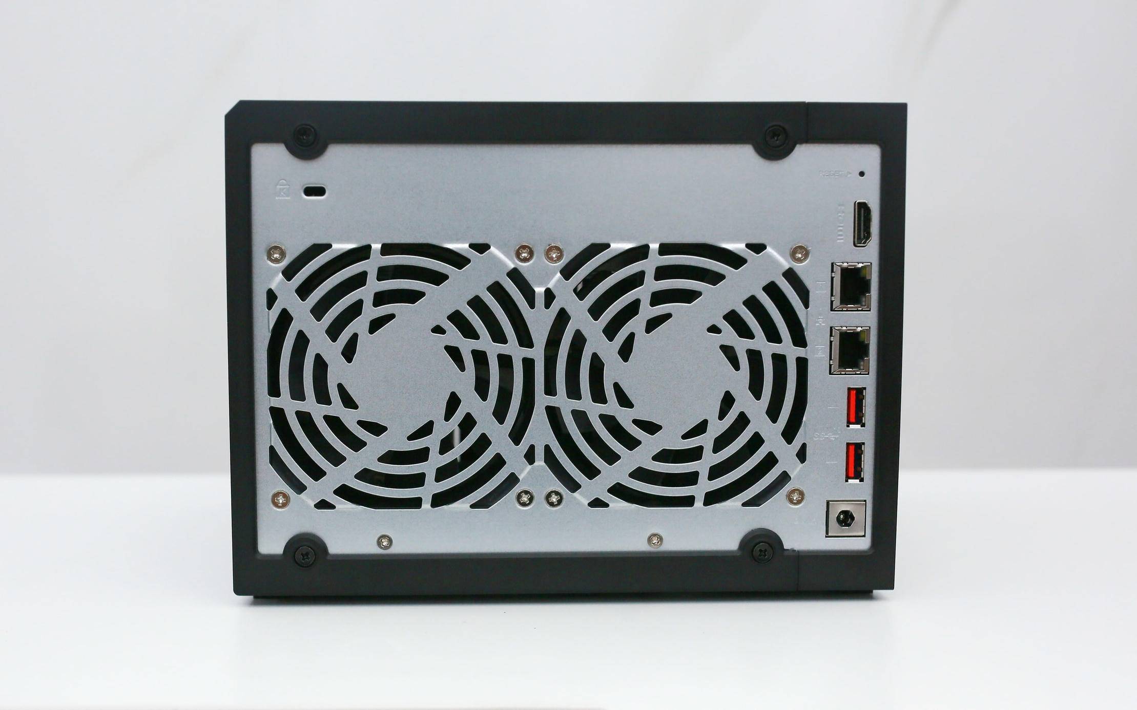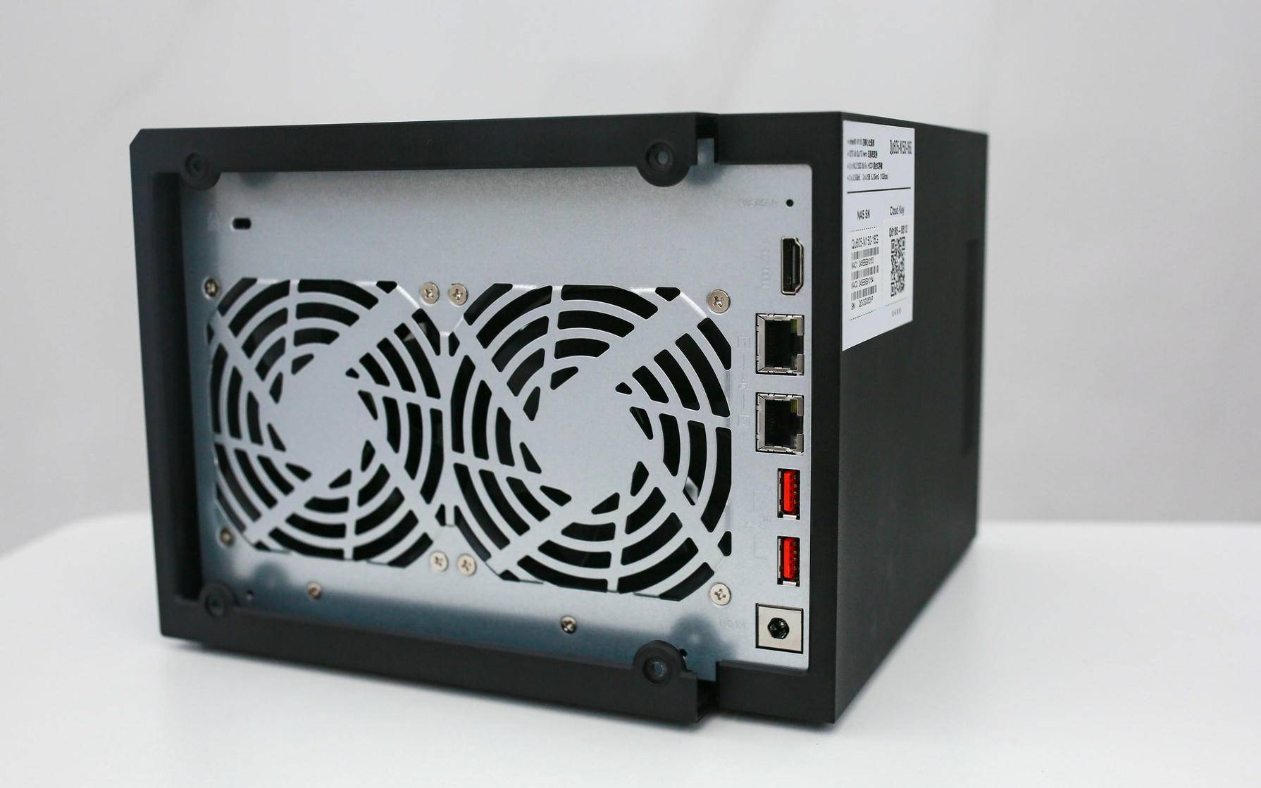 从后背看,Qu605 的设想照旧延续了威联通一贯的“低调专业”气概,嵌入于金属背板之中,视觉上毫不宣扬,却透出沉稳质感。两枚巨大的静音电扇几乎占领了整个背板核心区域,构成前进风、后出风的高效散热径。无论是多盘同时运转仍是长时间数据写入,温度节制都能连结正在平安区间,为设备不变性打下根本。