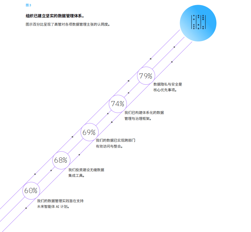 智能体AI正沉塑企业架构的底子逻辑。保守AI多基于预编程算法,常以单模子驱动的点状处理方案,正在孤立场景中施行特定使命。生成式AI基于大型言语模子,需依赖更强大的根本设备来承载多模态(文本、音频、视频)处置能力和更高的算力要求。自从智能体需要底子性的分歧:跨模子取模态的动态交互、及时消息互换,以及情境化的使命切换能力。成功的环节正在于建立面向协同统筹的架构,让智能体跨平台、跨系统自从协调,实现高度从动化运转。大都高管虽深知此基石的环节性,然而现实建立仍处于起步阶段。四分之三(76%)认同,建立、平安设想的架构,是打制多模态智能体AI生态的前提,其收集效应正来自分歧模子和智能体之间的协做取数据共享。超三分之二(69%)的受访者暗示,此类架构有帮于提拔通明度互操做性,并加快立异。然而正在互操做性建立取可扩展性落地上,取得本色性进展的组织尚不脚三分之一(见图2)。分歧成熟度组织间的手艺根本,已呈现显著的阶梯式落差。高度成熟组织中,89%已实现多元AI模子的无缝集成;而成熟度最低组织中,这一能力仅笼盖58%。85%的先辈组织具有可扩展的根本设备,以支持复杂AI工做负载,比拟之下,同业中的掉队者的实现比例仅52%。这些显著差距,不只是数字上的差距,更是成长款式的分化:一边已整拆待发,另一边却仍困于根本整合。 当组织同时把握自研模子、第三方根本模子取开源方案的模子生态时,其架构必需供给以下焦点支持能力:互操做性取统筹能力。智能体需要跨系统、跨模子流转使命,实现消息共享取步履协同。62% 的高管认识到,其架构需建立可以或许协调数据流动、模子交互取动态使命调动的统筹层;然而,61% 暗示,模子间的无缝集成取顺通顺信仍是当上次要挑和。一个取模子无关的架构,例如基于容器的统筹平台(将模子打包成尺度化、可移植的单位),能够支撑多种模子类型,并有帮于确保多种模子平稳协做、无缝运转。可扩展性取矫捷适配能力。弹性的扩展能力是应对智能体 AI 多元化工做负载的基石。为提拔可扩展性取矫捷适配能力,47% 的高管选择向云平台转型;44% 通过根本设备评估来系统性填补能力短板。云取夹杂架构使计较稠密型模子能取轻量模子协同工做,支撑新智能体快速集成,并取生态伙伴平安互联,正在合规可控取普遍顺应之间取得动态均衡,从容应对持续演进的需求。平安性。高管们分歧将数据现私取平安列为智能体 AI 的首要挑和,但仅 38% 正在开辟到摆设的 AI 全流程中,实现了安万能力的系统化嵌入。平安设想的架构可以或许数据、支持合规办理,并建牢自从智能体平安运转的根底。拜候节制取检测能力深度集成至根本设备底层,以便平安防护跟着智能体正在企业范畴内的摆设而从动扩展。可托取通明度。自从决策的实现,必需成立正在过程可见取权责清晰的根本之上。73% 的高管估计,到 2027 年,AI 代办署理将无力支持决策的可问责性和通明度。他们需要可以或许及时监测智能体行为、记实决策径,并供给注释自从步履若何及为何发生的审计轨迹的手艺架构(详见概念“及时监审系统,建牢自从决策的信赖根底”)。原生通明度的缺失,即即是最复杂的智能体也会退化为难以透视的“黑箱”,持续损耗用户信赖并枷锁其规模化落地。智能体 AI 时代,架构决定组织规模化速度、立异深度取合作高度。赢家以计谋视野建立架构:打制平安、、矫捷的框架系统,将智能体 AI 试点全面升维为企业级价值引擎。数据不再仅仅是输入。正在智能体AI的语境下,数据脚色已实现升维:从以往的模式进修取预测输出,跃迁为持续流动的“燃料”,正在动态中驱动自从化、方针导向的系统步履。智能体需借帮取工做流同步的及时数据更新,建立能持续优化决策质量取施行成效的动态反馈闭环。如斯持续的轮回,赋能智能体动态调适,持续产出高情境化的洞察,从而驱动长效营业影响。正在智能体AI时代,数据办理已提拔至计谋级高度。正在自从系统中,数据充任及时经验流的脚色,因而其质量、时效性取管理程度对机能的影响,远超保守AI或生成式AI。例如:——数据失准或不完整可能激发智能体行为失控,例如库存管能体味因错误的需求预测,从动触发大规模物料超额采购。——数据畅后可能导致智能体步履取及时脱节,例如买卖智能体根据两分钟前的股票价钱施行大额买入,却因未能捕获瞬时崩盘而触发。——管理系统的缺失,可能智能体正在现实世界施行未经授权且不成逆的操做,例如触发一系列无法撤销的买卖,形成严沉财政丧失。组织已建牢数据根底,聚焦现私、管理机制、可拜候性取系统集成,并已成为行业支流实践标的目的(见图 3)。当前的挑和正在于鞭策数据根本向智能体 AI 时代演进:实现数据更高频流动、更深层联动,以支持及时进修取自顺应的智能体运做。虽然 60%的组织暗示其实践已面向将来,但唯有将智能体 AI 的奇特征深度融入数据计谋,才能把前瞻性为现实合作力。 智能体 AI 时代的落地实践,不只需要新的脚色和技术,还要求从头定义营业、人才取智能体的成功尺度。近对折 (45%) 的高管坦言,智能体 AI 正鞭策营业方针设定逻辑的深刻进化。缘由何正在?由于自从智能体不只鞭策既有流程的加快,更将保守模式无法触及的新可能。将来两年内,72% 的高管估计,智能体 AI 将催生新的手