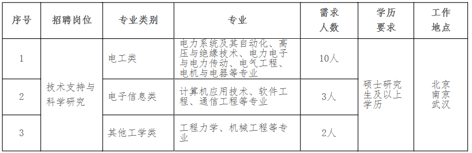 冀北公司2017年高校结业生聘请(第二批)估计共140人摆布,最终聘请数量及具体岗亭以上级单元核准环境为准。 电工类专业:以公司和承德公司所属县供电公司的乡镇供电所为从,聘请电工类院校本科生和电工类专科生;检修公司分部、特高压运检核心和部门县供电公司聘请少量二本及以上电工类结业生;市供电公司聘请少量电工类研究生。电工类专业次要指电力系统及其从动化、继电等强电专业。聘请结业生次要处置输电线、配网、农网设备运转巡视、、检修、抢险和带电功课等工做。 按照国度电网公司同一放置,组织结业生进行笔试、第二批同一笔试时间估计为2017年3月26日。具体测验时间、地址见聘请平台后续发布的测验通知布告。 电工类专业:变电设备检修、变电坐运维、继保及自控安拆运维、调控运转值班、以及乡镇供电所的农网运转取检修、农网营销办事等岗亭。 专业范畴:计较机科学取手艺、消息平安、财政金融、财政办理、电气工程及其从动化、安全、投资学等相关专业。 聘请岗亭是工程项目办理手艺,打算聘请2人,电气工程及其相关专业结业,大学本科及以上学历,工做地址为公司本部或部属工程扶植部。